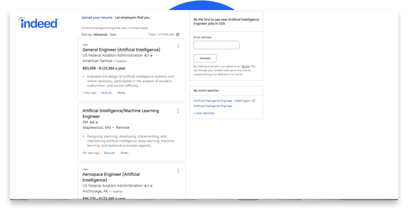 As per Indeed, there is a sharp rise in AI-related jobs in Australia. A study was found stating that AI will keep shaping its future in years to come. AI engineer jobs have doubled ever since 2012 in this economy. 2018 onwards, we saw an increment of 50% in its related roles.