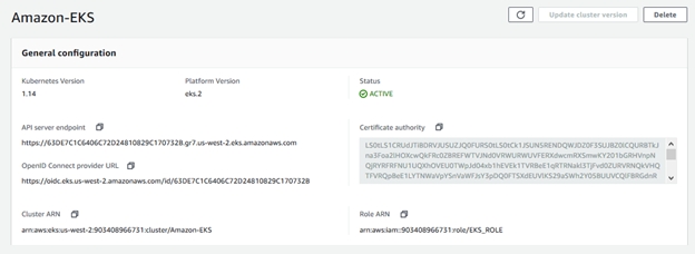 2). Create an Amazon EKS cluster