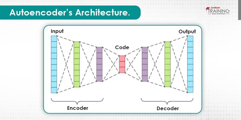 Both the encoder and decoder are completely associated with feed-forward neural systems, basically the ANNs. Code is a single layer of an ANN with our preferred dimensionality. The number of nodes in the code layer or can say code size is a hyperparameter that we set before preparing the autoencoder. This is a progressively visualized representation of an autoencoder. First, the data goes through the encoder, which is a completely associated ANN, to create the code. The decoder, which has the comparative ANN structure, at that point creates the input by just utilizing the code. The objective is to get an output indistinguishable with the data. Note that the decoder design is the identical representation of the encoder. This isn't a necessity however it's ordinarily the situation. The main prerequisite is the dimensionality of the data and output should be the equivalent. Anything in the center can be played with.