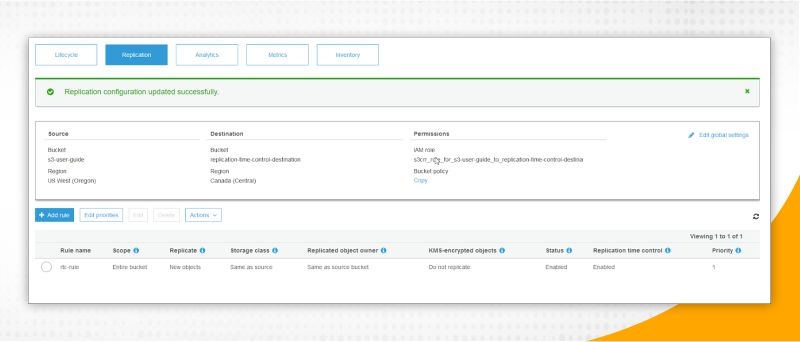 order to accomplish fault tolerance and disaster recovery, S3 makes available the mechanism of cross – region replication. Replication enables automatic, asynchronous copying of objects across Amazon S3 buckets. For this, we can add a replication configuration to the source bucket. This provides a number of advantages such as: