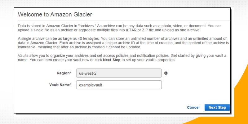 AWS Glacier is a very low cost storage service on Amazon Cloud platform. It is primarily used for data archiving and backup. The archive is the base unit of storage in Glacier(e.g., file, photo, video…).Archive IDs are unique and 138 bytes long. Glacier vault is a container for storing archives. Glacier updates the vault inventory approximately once a day. The management console can be used to create and delete vaults. All other interactions take place using CLI or SDK.