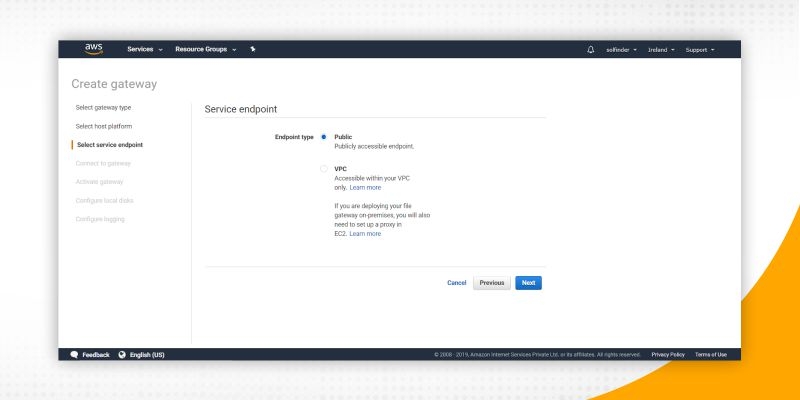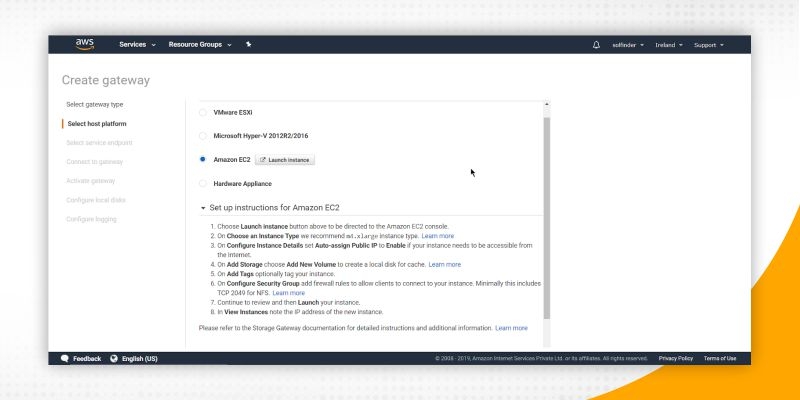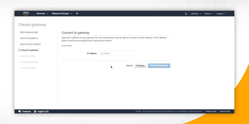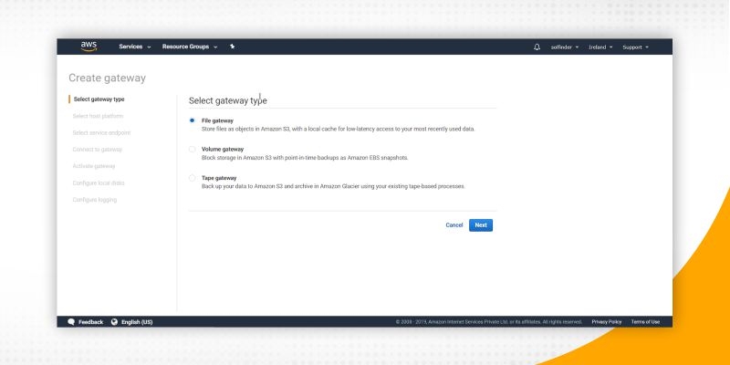 The gateway connects your applications to AWS storage over standard storage interfaces.