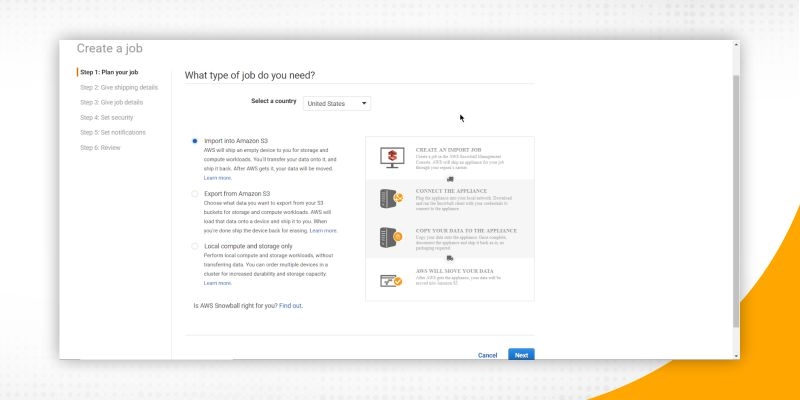 If we need to transfer large amounts of data between Amazon S3 and your data center we can consider using AWS Snowball which is an actual physical AWS cloud object storage device for data transfer.