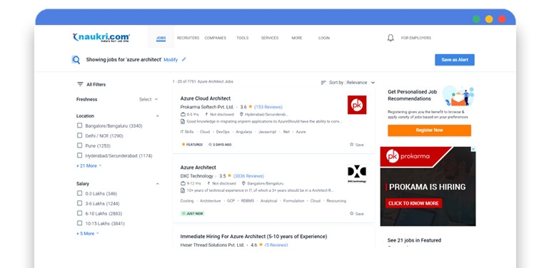 According to the Naukri website, Azure cloud architect jobs in India are close to 7000.