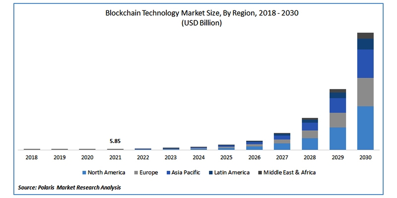 Blockchain adoption statistics show that almost half of the human population uses blockchain technology which accounts for nearly 40 million people. Blockchain is an exceptional career in 2022 and reports show that the Blockchain technology market will reach $7.59 billion by 2024. See the image below to find out the future prediction of Blockchain market-