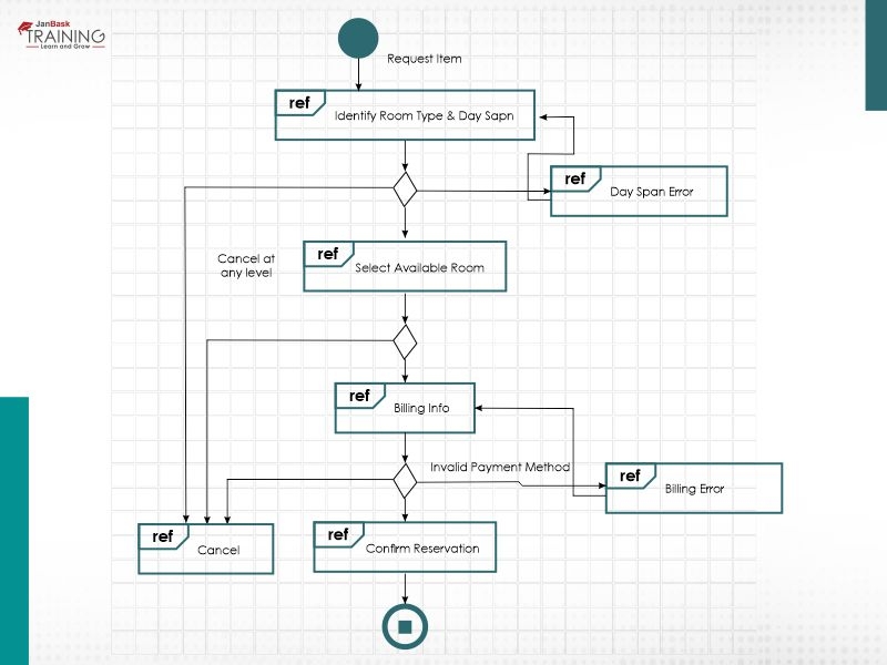 The commonly used UML diagrams have a regular flow or a moving flow in their direction. But many times, we need a controlled flow for any business needs. At the same time, it is demanded that the design interacts beside multiple sets of modules.
