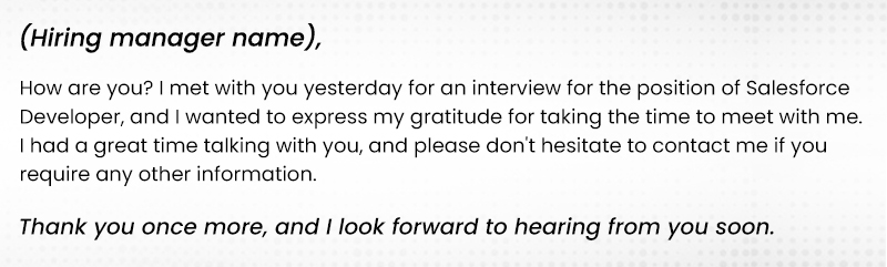 Have a look at the interview follow up email thank you note that you may consider sending post your interview: