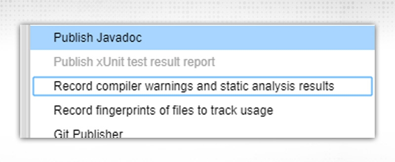 To scan and publish static analysis scans and reports. E.g. for scan, following line to be added in “post” block