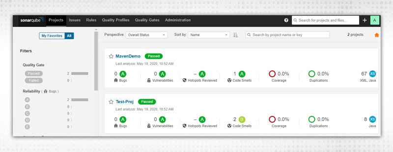 I was having 2 projects running, so it is showing two instances in my case. As it was a sample project, so no coverage happened but there is 1 “code Smells” issue. Similarly, go through your analysis and rectify problems as per priority /severity.