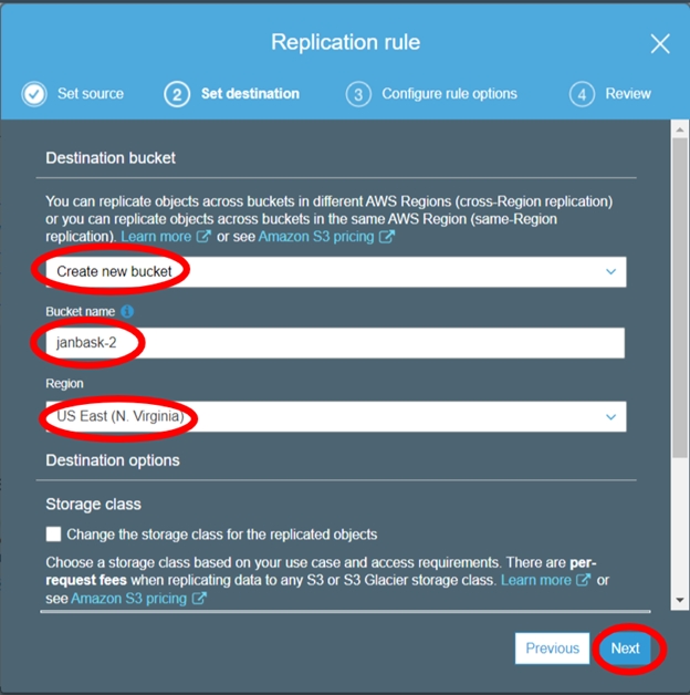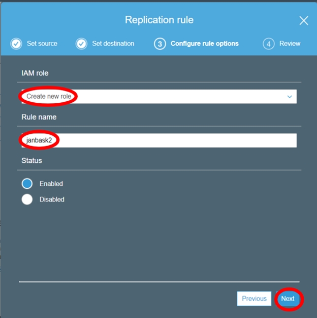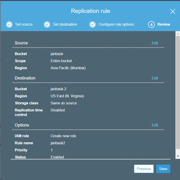 Steps to setup cross-region replication.