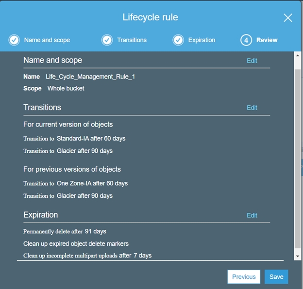 6. Review and save the Lifecycle management policy.