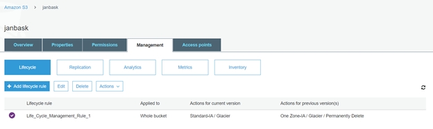 Now with life cycle management rules we can save the cost by moving the less or infrequent accessed objects from Standard storage class to Standard Infrequent access or even rarely accessed objects to amazon Glacier. These policies or rules can be applied to objects older than 30 days or more.