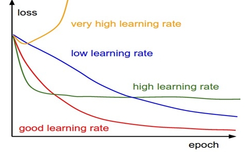 Learning Rate – Learning rate basically regulates the speed of the training network and how soon loss can be optimized. We can say the learning rate is defined as the amount of reduction in the cost function in each iteration. This learning rate is like tuning hyperparameters for designing and an optimizing network. The learning rate is an important configuration hyperparameter that can be tuned for training neural network models. It has a positive value normally between 0 and 1. We should select the optimum learning rate value. Its value should not be very high so that the optimal solution is passed and neither value should be very low so that a lot of time is required to converge the network.