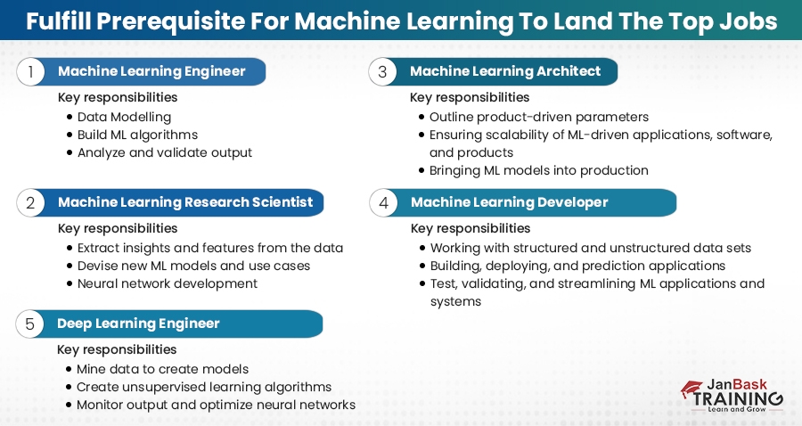 Machine learning is a lucrative field with scope for unprecedented career growth and financial rewards. As stated above, one must know how to learn about machine learning and understand machine learning prerequisites. Certifications, skills, and knowledge will fuel an enthusiastic effort to make a career in the rapidly growing machine-learning field. A proven Machine learning online certification training course with JanBask will inculcate skills for kickstarting the career or attaining excellence. Learn end-to-end practical knowledge of machine learning concepts like supervised & unsupervised learning, coding, neural networks, algorithms, and data modeling to earn industry-leading machine learning certifications.