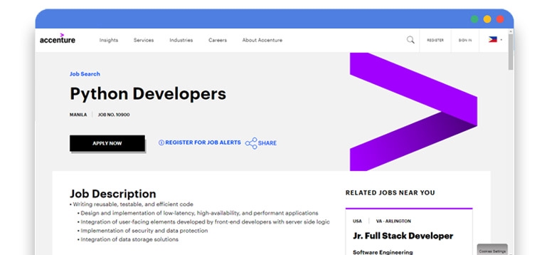 After completing the formal Python training, here is the Python developer description, you would be required to perform at an IT consulting company like Accenture, for instance.