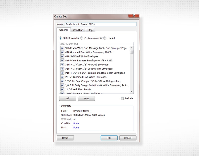 This way, you can use the set in the report and can get your work done. Apart from using the set in the report, you can also use this as a filter. There can be multiple requirements where you don't want to show all the products in the filter and want to show only 10 or 15 products to the user. Whenever you have this kind of requirement you can create a set and use that set as a filter. Further, you can combine two separate sets as well. To do that, just right click on both the sets and select create a combined set. Resolving the functions will be the same.
