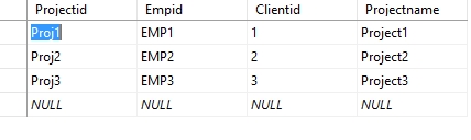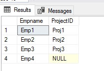 SELECT Employee.Empname, Project.ProjectID FROM Employee FULL JOIN Project ON Employee.EmpID = Project.EmpID;