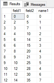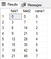 insert mergeexample2 values (@i * 3, @i * 7, @i)