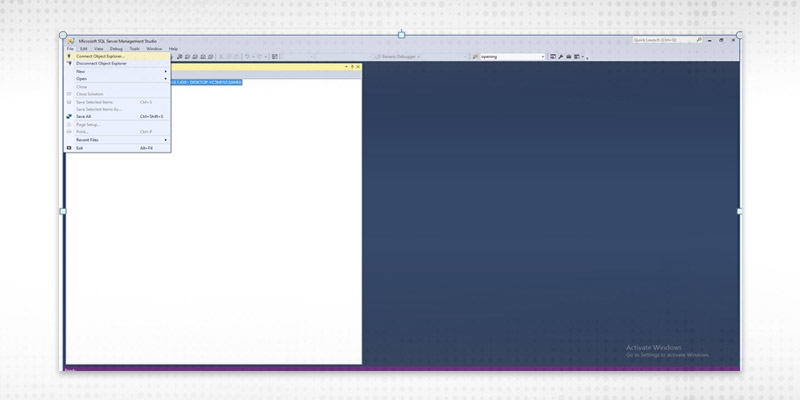 Open Microsoft SQL Server Management Studio and provide the necessary credentials.