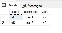 Insert into testusercheck values('id4','user 2',25)The final table looks like below