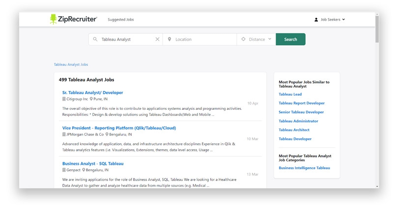 According to ZipRecruiter, there are close to 500 jobs available in Canada for Tableau reporting analysts.