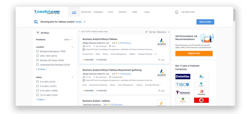 According to the famous job portal Naukri, there are more than 25000 jobs available in India for Tableau Analysts or Tableau reporting analysts.