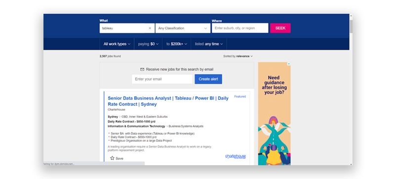 According to https://www.seek.com.au/tableau-jobs, there are more than 2000 jobs available in Australia for tableau Reporting Analysts.
