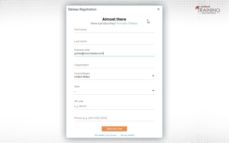 After that, you can enter the company name, state name, country name, zip code, and contact number. Just fill in these details and start on the start trial now button at the bottom. And if you already have the license available then anytime you can click on the activate button or later on, you can enter that by following the help menu.
