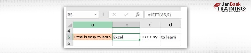 In this Excel function list, the LEFT() function displays the number of characters from the beginning of a text string. In the meantime, the MID() function returns the characters from the middle of a text string, with a start position and a length. Ultimately, the Right() function returns the number of characters from the end of a text string.