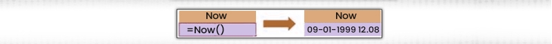 Excel NOW returns the date and time of the day, continuously updated when a worksheet is edited or opened. NOW() does not take an argument. You can format the value sent back by NOW as a date, or as a date with the time by applying a number format.