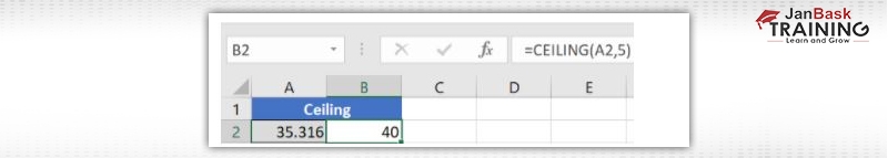 Then we have the ceiling function. The CEILING() function rounds a number to its nearest significant multiple.