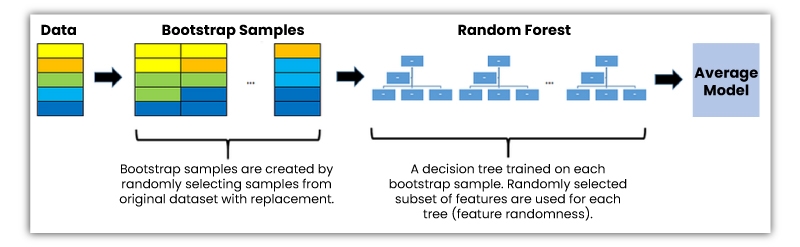 This ml algorithm is an assemblage of numerous decision trees. With the help of bagging, random forests are created where decision trees are utilized as parallel estimators. When utilized for classification issues, the outcome depends on the plurality vote of the outputs obtained from every decision tree.