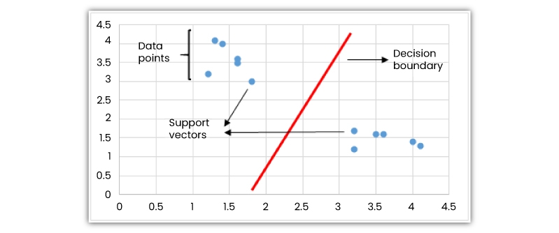 The SVM algorithm is a type of supervised learning algorithm commonly used for classification activities, but it is also best for regression activities. The support vector machine differentiates the classes by applying a decision boundary.
