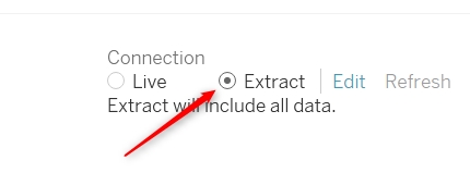 To implement the extract filter, click on the extract radio button under the connection option in the data pane.