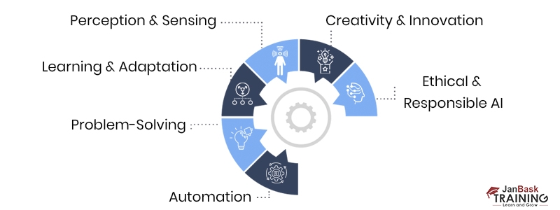 1. Automation: AI aims to automate tasks currently performed by humans, thereby increasing efficiency and productivity. This includes automating repetitive or mundane tasks, allowing humans to focus on more complex and creative endeavors.