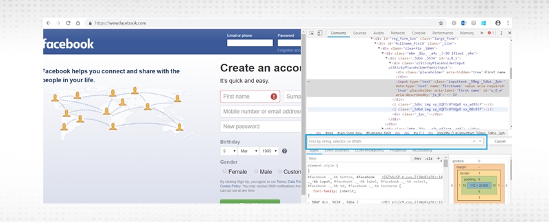 I will explain all the Selenium Commands in the next tutorial. But here I am going to explain how to locate a WebElement on the browser. I am using Facebook which is the most popular Social site in all my examples.