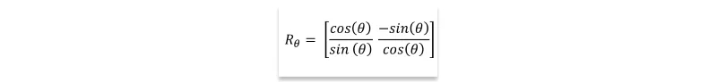 A: The rotation matrix Rθ in two dimensions, performing the transformation of rotating points about the origin through an angle of θ, is defined as: