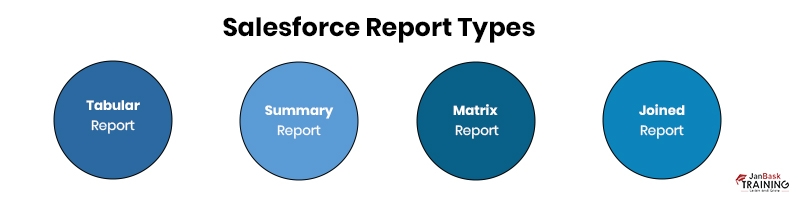 Answer: There are 4 kinds of reports that can be generated in Salesforce. They are Tabular, Summary, matrix, and Joined reports. Each report displays various data as per the result of the report. Standard reports are the ones given by salesforce.com. These kinds of reports are not deleted and are deployed mainly to produce custom reports.