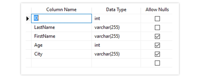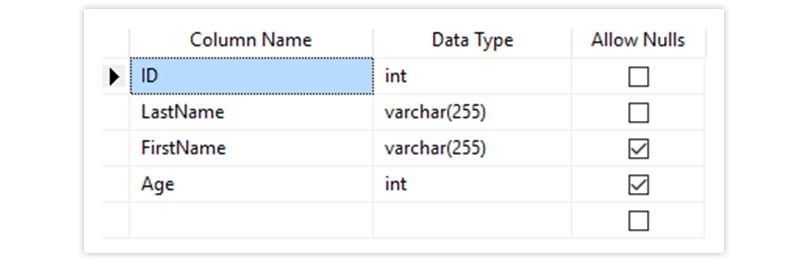 LastName varchar(255) NOT NULL,