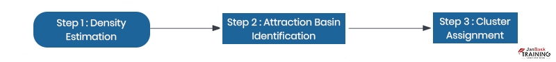 After estimating densities for all data points, we need to identify attraction basins – regions where high-density areas converge towards lower-density areas – because these are the potential cluster centers. We use gradient ascent to identify these attraction basins.
