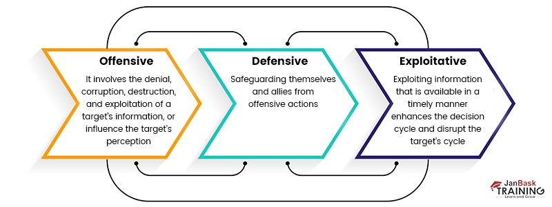 The goal of information warfare is to have information superiority. It is termed as the ability to collect, process, and disseminate information more efficiently or effectively than the adversary. Information warfare can be divided into three categories: offensive, defensive, and exploitative.