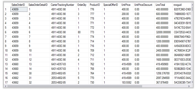 select * from [Sales].[SalesOrderDetail]