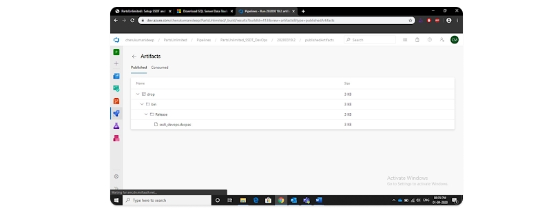 6. Expand the published artifact to verify if DACPAC is published successfully. This DACPAC will be used in the release pipeline.