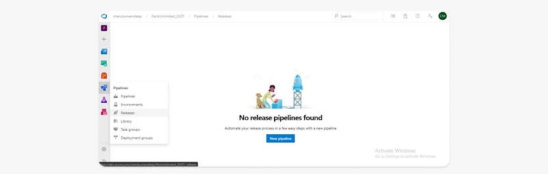 8. Define the release pipeline as shown in the image targeting the database to be updated.